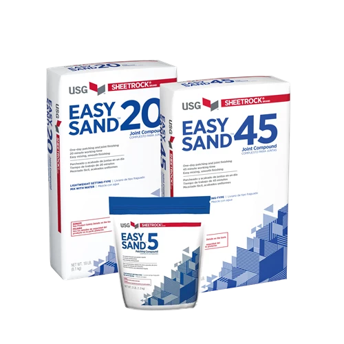 Sheetrock Easy Sand är ett snabbhärdande vitt pulverspackel för spackling, lagning och putsning av vägg- och takytor före tapetsering, målning och kakel. Numret efter produkten anger ungefärlig öppettid om 5, 20, 45, 90. Ska inte användas till ytor som direkt utsätts (utan fuktspärr) för kontinuerlig fuktighet.