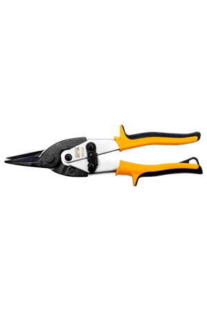 Rakklippande plåtsax med utväxling för ökad kraft. Fjäder för självöppnande handtag för enkel användning.