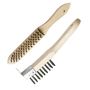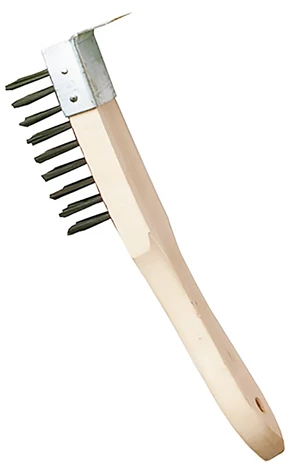 Mjuk stålborste för rengöring av träytor. Borste av rostfritt stål och plaststomme